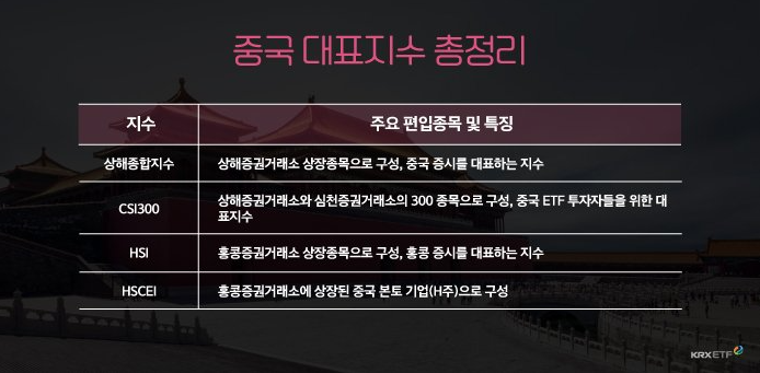 카테고리 없음 중국 대표지수 정리 by 긴호흡 투자 2021. 9. 28. 중국의 대표지수입니다. 상해종합지수, 상해증권거래소와 심천증권거래소의 300종목으로 구성한 CSI300지수, 홍콩지수인 HSI, 홍콩증권거래소에 상장된 중국 본토 기업으로 구성된 HSCEI지수가 있습니다. 공유하기 게시글 관리 찰싹이 저작자표시 (새창열림)
